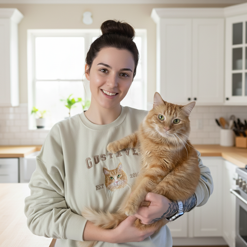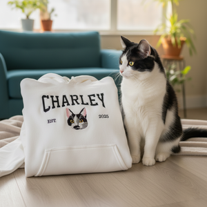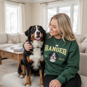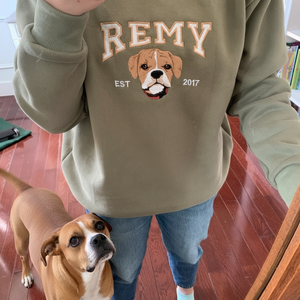 Custom Varsity Dog Embroidered Sweatshirt – Personalized Pet Portrait & Name with EST Year